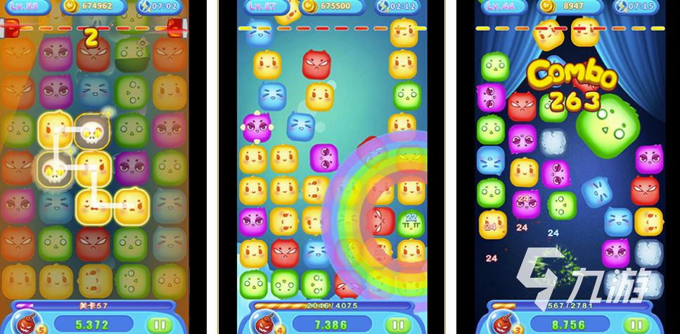 游戲里邊的小果凍都是Q彈可愛的,你只需要將顏色相同的兩個小可愛連接到一起就能成功的消除了。每一個關(guān)卡都有著不同的設(shè)計,在華麗的特效下邊更加的好看。
