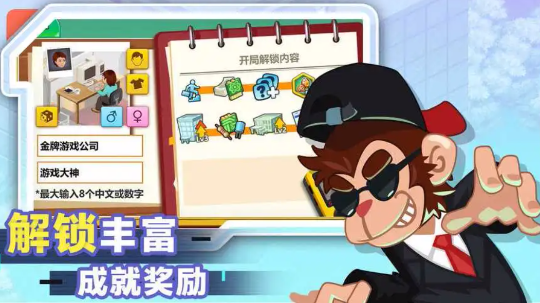 在這個(gè)游戲中玩家會(huì)成為一名公司的老板,需要研究各種游戲并且想辦法推出市場(chǎng),讓玩家們可以在這些游戲一種收獲的歡樂,要想研制出更多的游戲,就需要招募一些想法和創(chuàng)意的員工,玩家也可以在游戲中創(chuàng)造自己喜歡的游戲,能通過這種設(shè)定了解到游戲開發(fā)者的日常生活。
