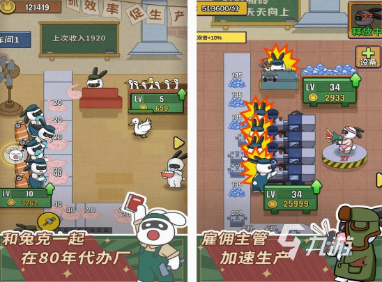 這款以兔克展開創(chuàng)業(yè)的小游戲,也將小兔子進(jìn)行了擬人化的設(shè)計(jì),通過與這些兔客們?cè)谝黄穑硎苻k工廠所帶來的獨(dú)特經(jīng)營(yíng)模式。為了使工廠的效率更高,需要不斷的拓展生產(chǎn)線,當(dāng)擁有了新的工廠以后,可以更好的增加收入。還要雇傭主管,通過模擬的這種方式,使你也成功地完成創(chuàng)業(yè)。既有傳統(tǒng)的美食,還有玩具、家電等,生活中息息相關(guān)的。