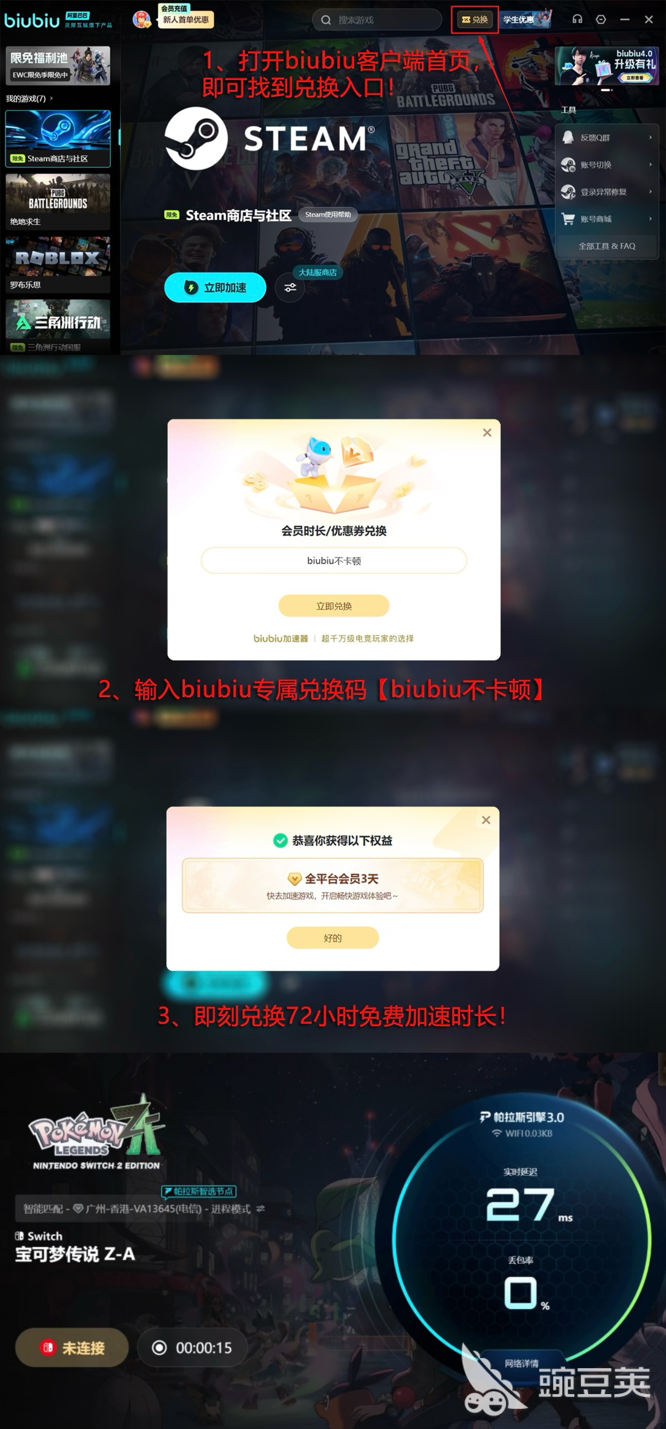 盡管游戲整體評價積極,但在畫面表現(xiàn)上仍存在一定優(yōu)化空間,尤其是在NS主機(jī)運(yùn)行時,探索過程中偶爾會出現(xiàn)幀率下降的情況。為此,推薦使用專為Switch平臺優(yōu)化的加速工具——biubiu加速器來提升運(yùn)行穩(wěn)定性。新用戶注冊即可領(lǐng)取24小時免費(fèi)加速時長,同時所有用戶均可使用口令【biubiu不卡頓】兌換3天加速服務(wù)。此次升級后的biubiu加速器搭載了帕拉斯3.0引擎,并邀請電競賽事冠軍Aixleft擔(dān)任產(chǎn)品體驗官,進(jìn)一步增強(qiáng)了對即時戰(zhàn)斗類游戲的支持能力。無論是技術(shù)架構(gòu)還是實(shí)際表現(xiàn),都有顯著提升。建議玩家充分利用提供的免費(fèi)福利進(jìn)行測試體驗,具體領(lǐng)取方式請參考下方長圖說明: