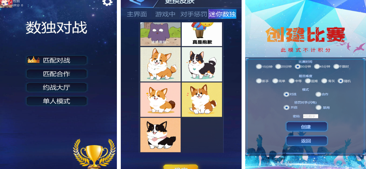 看名字就知道本作絕對是款支持聯(lián)機PK的數(shù)獨類作品,開局玩家可選擇自己的頭像還有數(shù)獨模式,支持多人聯(lián)機一起闖關(guān)或者對戰(zhàn)模式,約戰(zhàn)大廳中全都是實力強悍的數(shù)獨高手,你可以選擇不同的數(shù)獨對手進行公平的比拼,也可以自定義開創(chuàng)比賽讓大家在一起比拼智商,單人模式中亦可不斷鉆研數(shù)獨的精髓,相信這款玩法超多的聯(lián)機版數(shù)獨佳作能滿足數(shù)獨高手需求。
