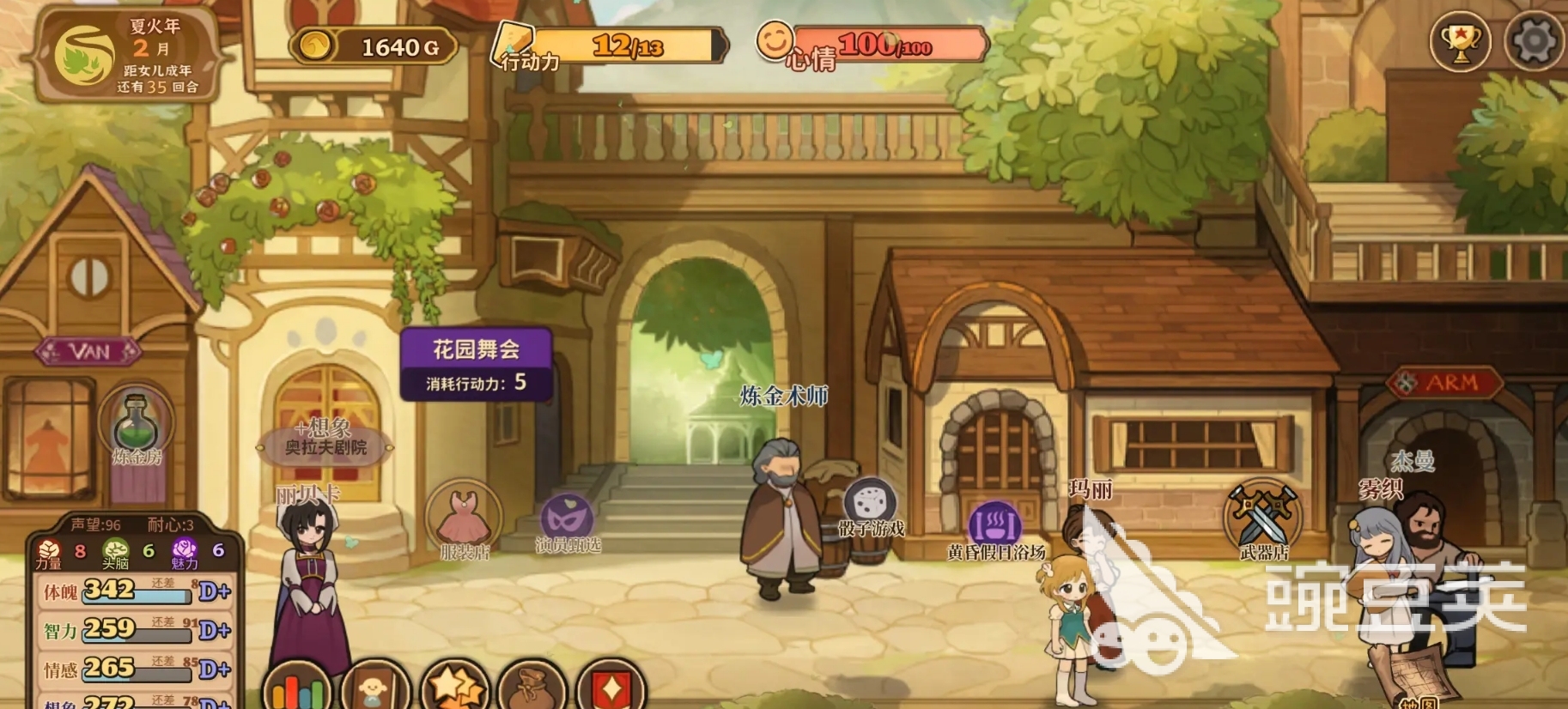 女兒在成長時除了能通過課業(yè)來增長自己的能力外,各位還可帶女兒一起烹飪,種植各類花卉,甚至還可煉金。等女兒擁有了職業(yè)后,還可為她去購置合適的裝備,把她全方位的武裝起來,確保她在外出探險時能更好地去應(yīng)對所有的戰(zhàn)斗。此外,女兒還會與多位伙伴相遇,目前此作共有九名主要的伙伴角色,玩家可協(xié)助女兒與他們相識相交,最終成為要好的朋友,并且在好感度足夠時,還可單獨(dú)開啟某名伙伴的邀約。
