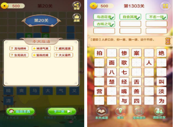 不僅在現(xiàn)實生活中有很多的人,喜歡與身邊的人通過成語接龍的這種玩法,感受每一個人的積累量,在手游當(dāng)中所具備的詞匯量也是很豐富的,那么成語接龍小游戲有什么呢?接下來可以對融入了成語,甚至是我國漢字有關(guān)的游戲進行了解,都需要你在闖關(guān)的過程當(dāng)中,根據(jù)游戲的設(shè)定才能完成任務(wù)。