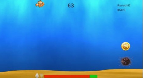 當(dāng)玩家進(jìn)入了這款游戲當(dāng)中的時(shí)候,主要就是使用聲音來(lái)控制里面的可愛(ài)小魚(yú),仿佛置身于小魚(yú)所生活的水中環(huán)境一樣。有特別簡(jiǎn)約的背景設(shè)計(jì),為藍(lán)色的海洋環(huán)境,在利用聲音控制小魚(yú)的時(shí)候,需要注意屏幕上會(huì)有海膽,這種會(huì)造成游戲失敗的生物,所以必須要正確的利用音調(diào)控制,讓小魚(yú)不斷的在屏幕上下移動(dòng),就有機(jī)會(huì)獲得獎(jiǎng)勵(lì)。