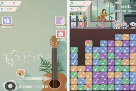主要就是通過(guò)消除玩法,將各種顏色的音符,通過(guò)正確點(diǎn)擊的方式,來(lái)完成相應(yīng)的任務(wù),同時(shí)還有好聽(tīng)的音樂(lè),給大家進(jìn)行呈現(xiàn)。因?yàn)橥婕野缪莸氖且幻葑嗉?,而在彈奏旋律的過(guò)程當(dāng)中,通過(guò)將相同顏色的音符方塊消除以后,來(lái)完成相應(yīng)的任務(wù)挑戰(zhàn),在每次闖關(guān)以后,就能聽(tīng)到角色彈奏的好聽(tīng)音樂(lè),仿佛沉浸在其中一樣。