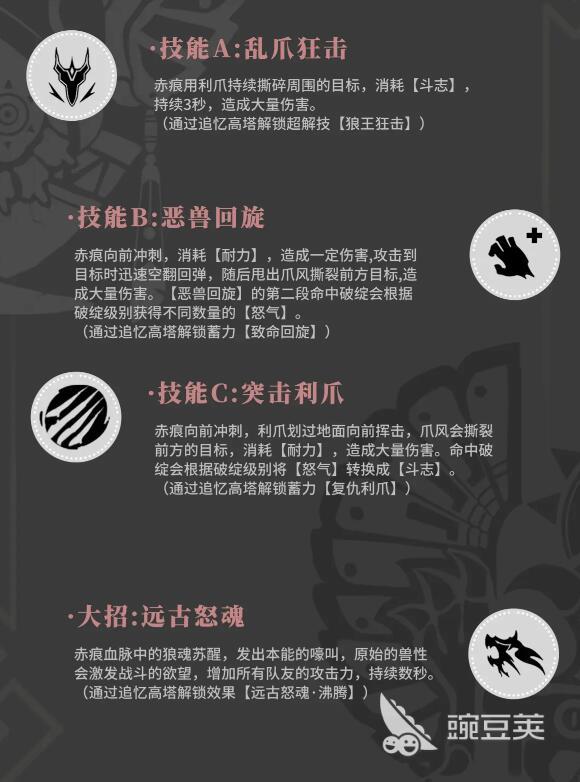 雪原獵人的普通攻擊會連續(xù)對眼前的目標撕裂5次,每一次的命中都可以為自身增加怒氣值,如果敵人的韌性條已經(jīng)完全空掉,此時雪原獵人對目標發(fā)動的攻擊還能夠額外的恢復(fù)自身的體力。長按普攻能夠?qū)⑺毫迅淖兂衫峭踝?,使用狼王爪攻擊目標,會讓敵人的身上出現(xiàn)狼魂的殘影。當敵人身上的殘影被疊加到一定數(shù)量時,雪原獵人就可以在敵人身后召喚出狼人,狼人持續(xù)一段時間會自動對身邊的目標發(fā)起攻擊。
