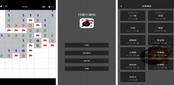 掃雷狂奔突破傳統(tǒng)靜態(tài)掃雷模式,融入動態(tài)推進玩法將掃雷與闖關(guān)結(jié)合,游戲以關(guān)卡形式呈現(xiàn),每個關(guān)卡的格子陣列隨玩家操作逐步解鎖,玩家需從起點格子開始,通過點擊安全區(qū)域推進探索范圍,推進過程中會觸發(fā)新的地雷分布區(qū)域,同時可能出現(xiàn)道具格子與障礙格子。