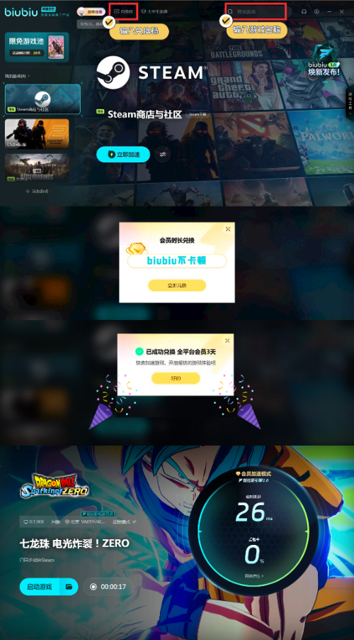 想要更好的在七龍珠電光炸裂ZERO中體驗(yàn)各個(gè)角色的解鎖,網(wǎng)絡(luò)的穩(wěn)定是基礎(chǔ)的保障,在游戲打開之前可以先用biubiu對(duì)游戲加速,可以穩(wěn)定網(wǎng)絡(luò)。新用戶使用會(huì)有24h的免費(fèi)體驗(yàn)時(shí)長,這個(gè)時(shí)長可以對(duì)全部游戲加速,當(dāng)然包括steam平臺(tái)。后續(xù)輸入【biubiu不卡頓】還有72h免費(fèi)時(shí)長等大家領(lǐng)取。