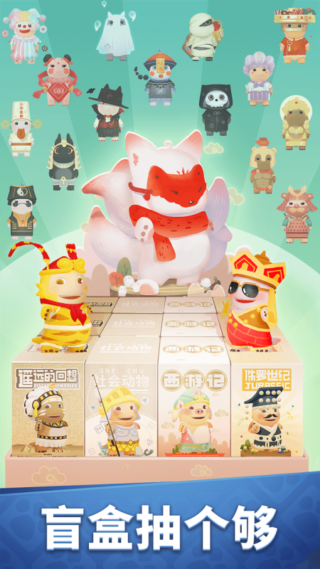 游戲?qū)⑴芸岷统槿∶ず械仍厝诤显谝黄?,實現(xiàn)免費抽盲盒,感受別樣歡樂。游戲擁有三藏法師、阿努比斯、咸魚社畜等角色,體驗神奇道具等。