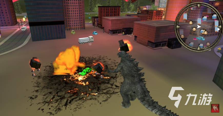 金剛向前沖是款充滿創(chuàng)意的冒險(xiǎn)格斗類游戲,玩家可操控體格健壯的金剛大猩猩在城市中冒險(xiǎn),不僅可以隨意摧毀城市中的高樓大廈,還可以與穿梭其中的霸王龍進(jìn)行戰(zhàn)斗,舉起汽車和建筑殘骸做武器攻擊恐龍的畫面非常震撼,3D的視覺效果與真實(shí)爆炸特效帶來了視覺沖擊,較為自由化的游戲內(nèi)容也是眾多怪獸游戲粉絲的最愛。