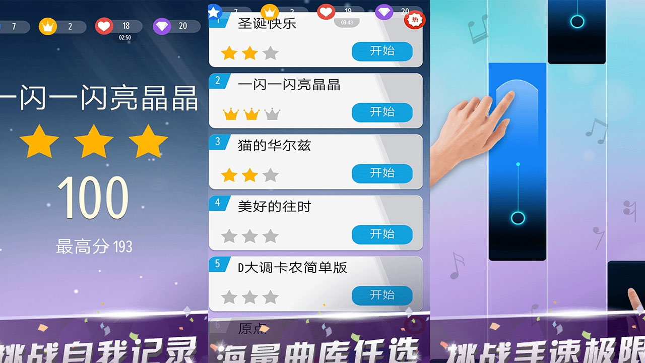《白塊兒達人》沒有年齡段的限制,不管是老人還是孩子,都可以玩的很開心,所以完全可以安心游戲的質量,都是健康的純音樂鋼琴曲。純音樂鋼琴曲分為兩大類型,一種是大家耳熟能詳?shù)牧餍幸魳罚硪环N則是大師云集的古典音樂,孩子可以從簡單易上手的流行音樂開始玩,通過點擊下落的鋼琴鍵來感受音樂的節(jié)奏,等有了一定的音樂感知能力以后,就可以試試古典音樂了,古典音樂嚴肅且不失感性的旋律可以大大提高孩子的音樂審美。