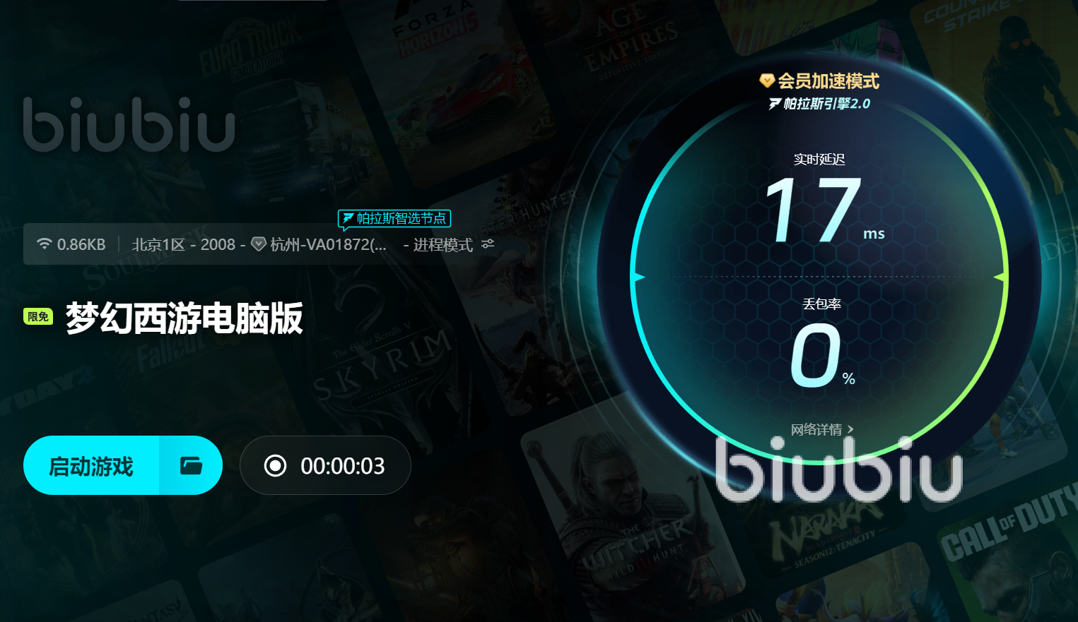 本期關(guān)于夢幻西游加速器的推薦就分享到這里,biubiu加速器憑借其穩(wěn)定安全的網(wǎng)絡(luò)加速能力與便捷易用的操作方式,已成為眾多夢幻西游玩家的可靠選擇。目前平臺還支持限時免費體驗,下載后即可親身感受它在游戲流暢度與延遲優(yōu)化方面的實際表現(xiàn),零成本試用無壓力,是否適合自己,試過才知道,不妨立刻行動,開啟絲滑游戲體驗之旅吧。