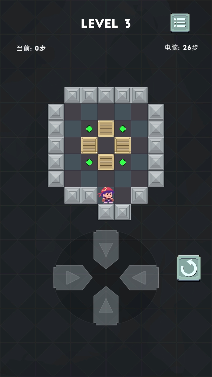 這是一款經(jīng)典與現(xiàn)代結(jié)合版本的推箱子,在游戲里我們不僅可以玩到之前的玩法,也就是吧箱子推到正確的地方,并且,在游戲里我們也可以自己選擇游戲難度。