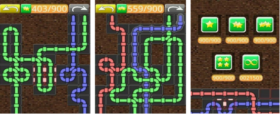 4個不同難度的等級,從簡單到困難應有盡有,每個關卡中都會呈現(xiàn)出錯綜復雜的地理環(huán)境,看到眼前的這些管道時,只要滑動屏幕,將這些零零散散的管道連接在一起,順利完成拼圖,將管道成功連接到整個房間之后,讓水源暢通無阻。海量關卡,都可通過逐漸闖關的方式完成挑戰(zhàn),看似特別簡單,但是卻有一定的挑戰(zhàn)難度。