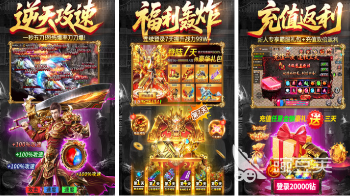 《雷神戰(zhàn)紀(jì)》在設(shè)定與玩法層面忠實復(fù)刻PC端傳奇風(fēng)格,廣受懷舊玩家歡迎。游戲同樣啟用多位明星及網(wǎng)絡(luò)紅人進(jìn)行推廣,影響力廣泛。主打單職業(yè)打金模式,簡化養(yǎng)成路徑,便于專注資源獲取。戰(zhàn)斗系統(tǒng)成熟穩(wěn)定,背景美術(shù)風(fēng)格刻意營造復(fù)古氛圍。公平競技環(huán)境結(jié)合自由PK機(jī)制,提升對抗可玩性。高速攻擊頻率助力玩家輕松清理怪物,擊敗BOSS后還可自動拾取金幣,加快資源回收速度,是一款兼具創(chuàng)意與實用性的傳奇類精品APP。