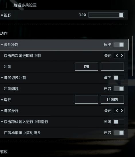 有關(guān)操作大家可以在編輯步兵設(shè)置里操縱,這里有一些功能都是可以開(kāi)啟的,比如步兵沖刺和滑行種各項(xiàng)細(xì)致的操作按鈕,小伙伴們根據(jù)個(gè)人習(xí)慣進(jìn)行設(shè)置即可。