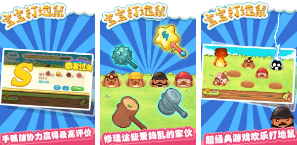 《寶寶打地鼠》這款游戲帶著孩子們來到了地鼠的洞穴之中,孩子們在游戲中的主要任務(wù)就是使用手中的棒槌來擊打從樹洞中逃出來的地鼠們,游戲策劃為這些可愛的技術(shù)們設(shè)置了不同的顏色,而每一種顏色需要小朋友們使用相應(yīng)的技能來將其擊潰。同時,這款游戲的風(fēng)格非常卡通,也為孩子們創(chuàng)造出了不同風(fēng)格的游戲內(nèi)容和玩法,引導(dǎo)孩子們在游戲的過程中了解到戶外運動的益處。