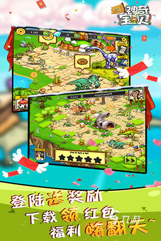 在原始社會,人類同恐龍一起生活,養(yǎng)育恐龍和它的嬰兒,生產多種金幣和升級建筑物等,展開刺激大作戰(zhàn)。