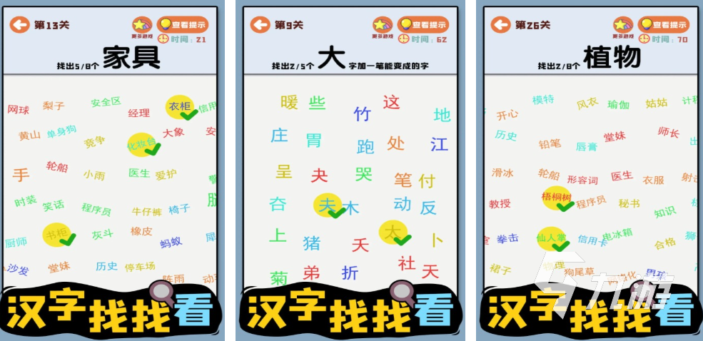 漢字找找看這款游戲以漢字組合作為主題,在游戲中不僅有復(fù)雜的漢字組合,玩家需要找到并且組合對應(yīng)的漢字,另外在該游戲里面也涉及到生物解謎的玩法。正是由于這款游戲的漢字內(nèi)容特別的豐富,畫面相對簡潔清晰,玩家在操作的時(shí)候特別容易上手,所以各個(gè)年齡階段的玩家都適合體驗(yàn)這款游戲。
