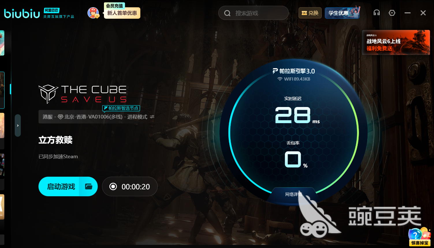為了讓更多玩家享受無憂的游戲體驗,biubiu推出了豐厚的新用戶專屬福利。首次注冊即可自動獲得24小時全平臺免費加速服務,輸入兌換碼【biubiu不掉線】還可額外領取72小時使用時長,總計可享96小時的高品質(zhì)加速體驗,助力玩家輕松完成下載并暢玩立方救贖。