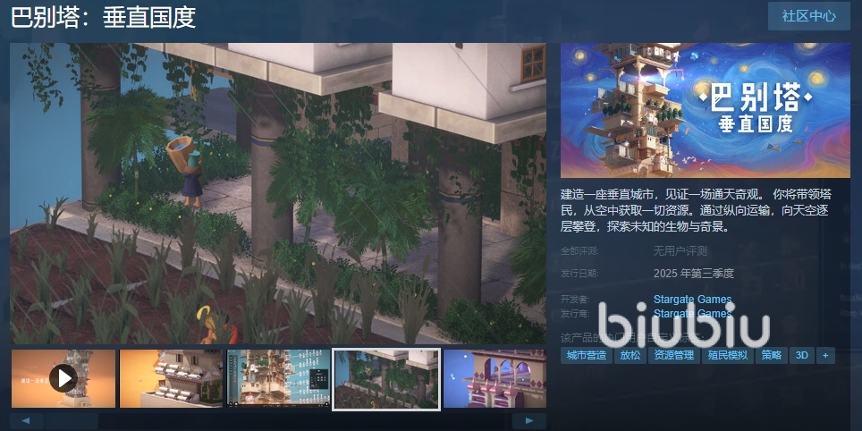 這款游戲在steam上的正式名稱就是巴別塔垂直國(guó)度,英文名為Stario: Haven Tower,目前已在steam平臺(tái)上線,并提供了DEMO試玩版本,預(yù)計(jì)將在2025年第三季度以搶先體驗(yàn)形式正式推出。