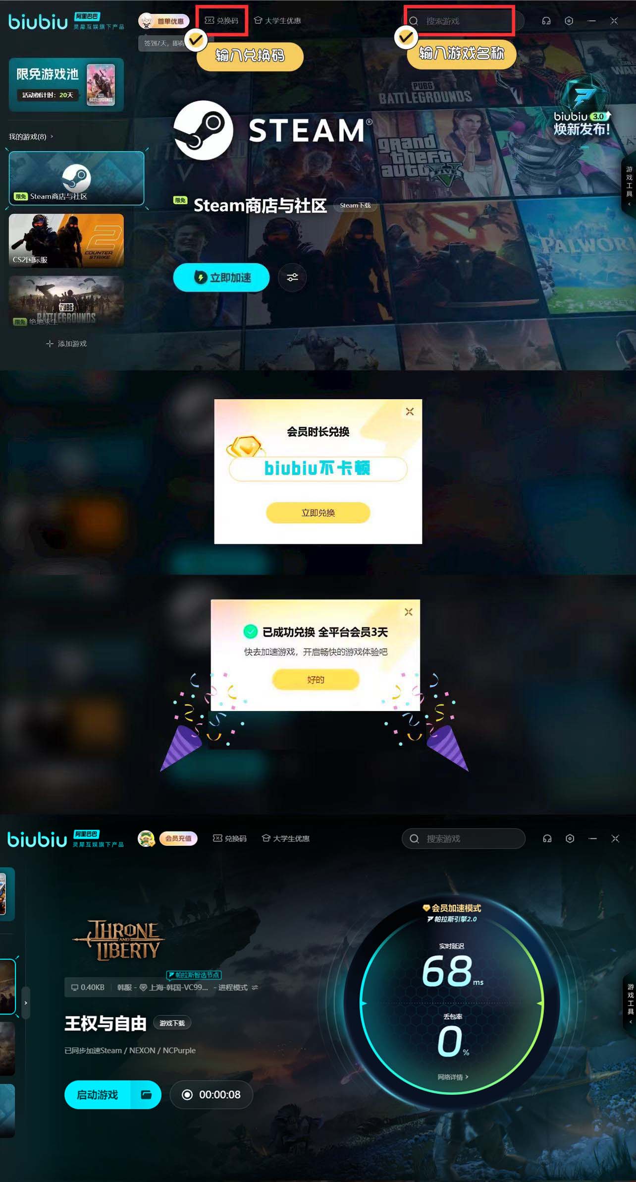 不過剛開測時,上線人數(shù)肯定很多,并且非?;鸨?。這時就要用biubiu進行加速,才能解決卡頓問題,讓你無需擔憂,玩到一半就掉線。新用戶的話可領取24小時的免費加速,另外新老用戶均可通過【biubiu不卡頓】,就能額外獲得三天免費加速。