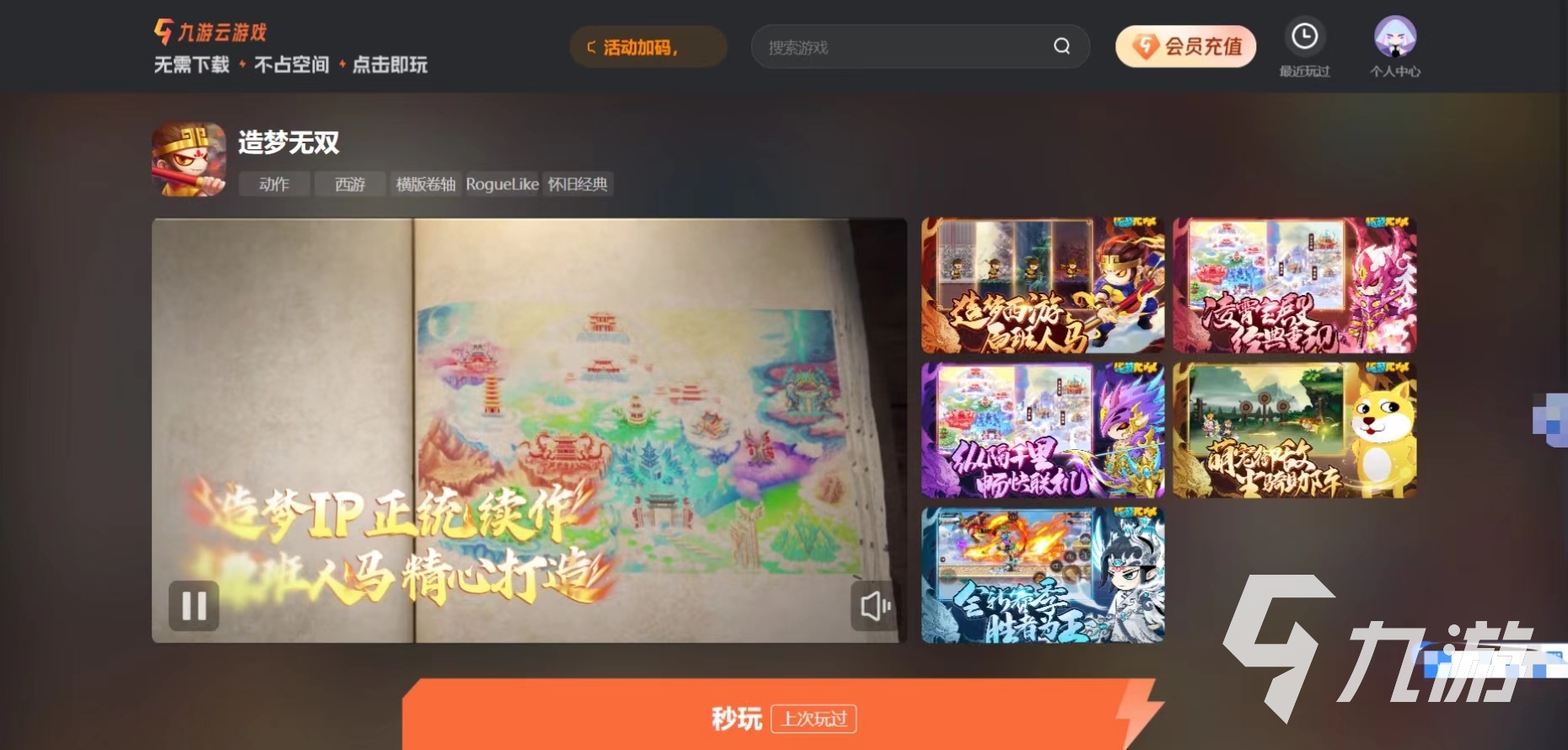 九游新推出的這個功能對于一些配置比較低的電腦設(shè)備來說都是可以進行玩游戲的,而且主要游戲的運行是依賴于云端服務(wù)器的強大性能,本地設(shè)備只需要具備一些功能就可以了,這樣可以享受大家的游戲體驗,大大玩家享受游戲的門檻降低了。而且傳統(tǒng)的手游下載和安裝過程可能會需要比較長的時間,尤其是對于一些比較大型的游戲來說,下載的時間就更加的長。而且云游戲是不需要進行下載安裝,玩家可以直接在云游戲平臺上選擇造夢無雙并快速開始游戲,我樣叫大家節(jié)省了大量的等待時間,可以讓玩家能夠更加快速的進入游戲世界。