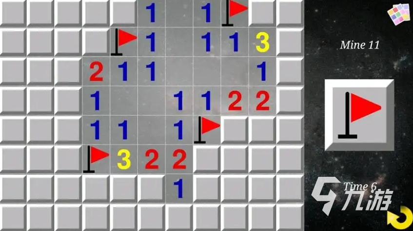 畫面簡單,還是經(jīng)典的掃雷玩法,很考驗(yàn)小伙伴對數(shù)字的記憶能力和對地雷的推理能力,點(diǎn)擊方格以后如果是安全的話就會(huì)顯示數(shù)字,一旦點(diǎn)到地雷就會(huì)失敗。