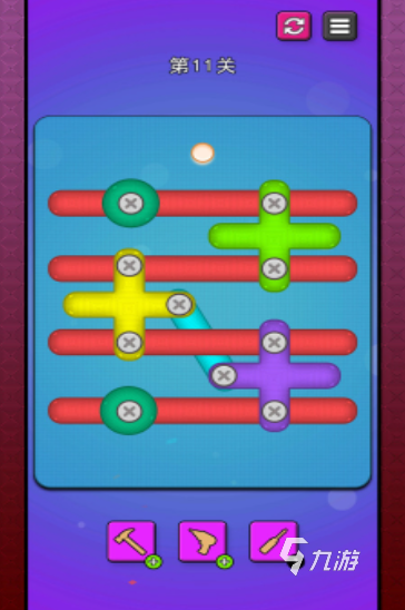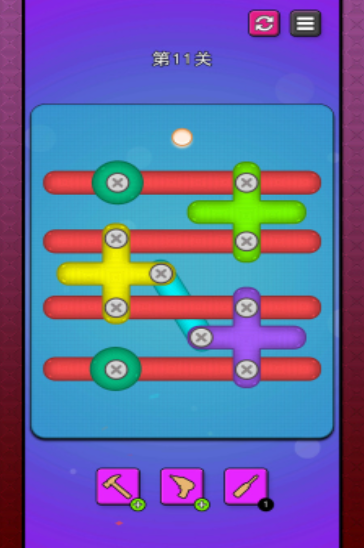 這款游戲?yàn)榇蠹以O(shè)計(jì)了許多被螺絲釘住的諸多五顏六色的水晶條,大家要做的就是拆除螺絲,讓那些水晶條掉下來(lái)。游戲十分講究規(guī)律,你拆除螺絲的順序若是搞錯(cuò)了一步,就會(huì)步步錯(cuò),這對(duì)于大家的思維能力是十足的考驗(yàn)。游戲特意將界面設(shè)計(jì)的清爽干凈,才不容易給大家的視感造成干擾。