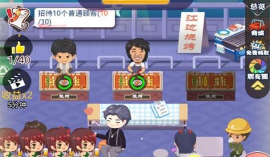 《宇宙燒烤店》這是一款讓你作為老板視角的經(jīng)營燒烤店的手機游戲,你可以不斷的升級菜品,解鎖廚師,服務員,傳菜員,并且可以讓他們?nèi)湍阕鲂麄?,以此來吸引更多的顧客光臨你的燒烤店哦。