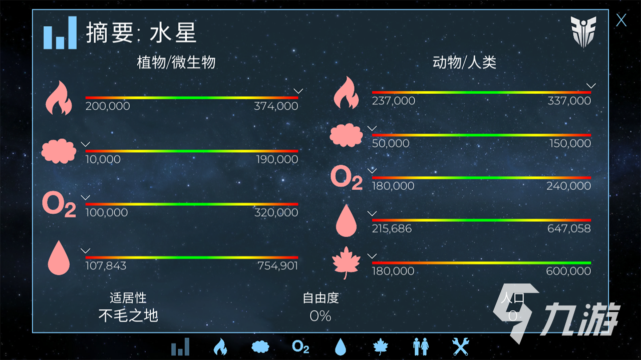 這是一款模擬題材的太空游戲,游戲中以各種角度還原了星球毀滅下的各種潛行條件以及毀滅的即時(shí)場景,各種星球毀滅的方法都由玩家一手操作。