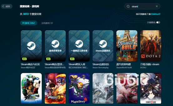 此應(yīng)用的整體兼容性極強(qiáng),不僅支持pc、ps各種掌機(jī)設(shè)備以及游戲機(jī)也能夠在這里同步加速,尤其是Steam,這款熱度極高的全類型游戲平臺(tái)中的各種特色作品,都能在biubiu當(dāng)中自由搜索。