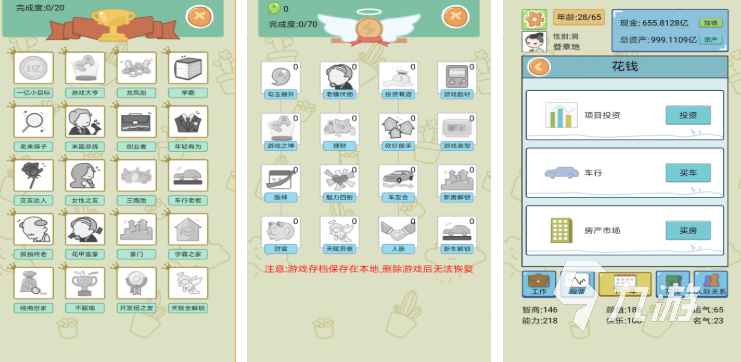 中國式人生是極具中國韻味的模擬經(jīng)營游戲,玩家自嬰兒時(shí)期起步,抓周定起始方向,升學(xué)、擇業(yè)、戀愛、結(jié)婚等諸多人生節(jié)點(diǎn)均需抉擇,可選學(xué)霸、商人等多元職業(yè),工作學(xué)習(xí)提升技能,兼顧投資理財(cái),退休后也有豐富活動,多條人生軌跡與真實(shí)職業(yè)貼合,角色互動影響結(jié)果,玩家選擇牽一發(fā)而動全身,成就系統(tǒng)添探索趣味,畫面新奇簡潔,界面布局清晰,場景豐富多樣。