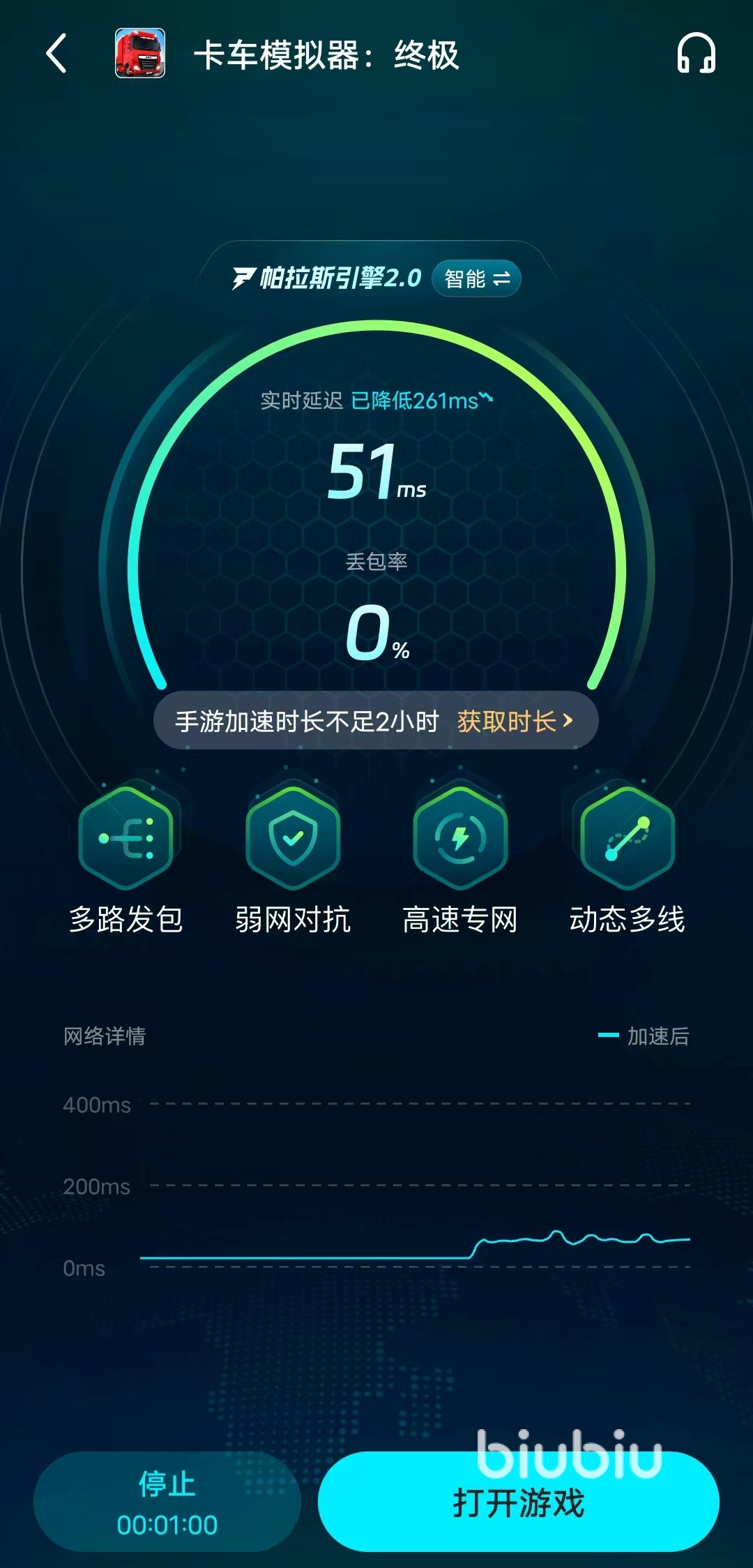 操作上更是簡單到極致,打開biubiu,搜索“終極卡車模擬器”點一鍵加速就完事。界面干凈直觀,不需要任何復(fù)雜設(shè)置。更贊的是,它還能順便加速大多數(shù)平臺,PC上的模擬駕駛、賽車類游戲也能享受同樣的穩(wěn)定體驗,一款軟件多場景通吃。
