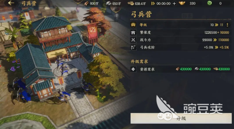 比如說其中的校場(chǎng),大家只有在達(dá)到了7級(jí)之后,才可以解鎖第二個(gè)副將的位置,那么在上陣的時(shí)候,大家除了主將就可以帶上兩位副將,所以在提升戰(zhàn)斗力效果上面是非常強(qiáng)的,而兵營(yíng)這個(gè)建筑,大家達(dá)到了9級(jí)之后,兵種的能力上面可以提升2階,所以戰(zhàn)力上面提升的幅度是非常大的,還有君主殿這個(gè)建筑,如果有升級(jí)到8級(jí)的話,就可以開啟軍事府,這個(gè)建筑主要是給大家?guī)碜銐虻姆睒s度,以及部曲兵力上限的效果。