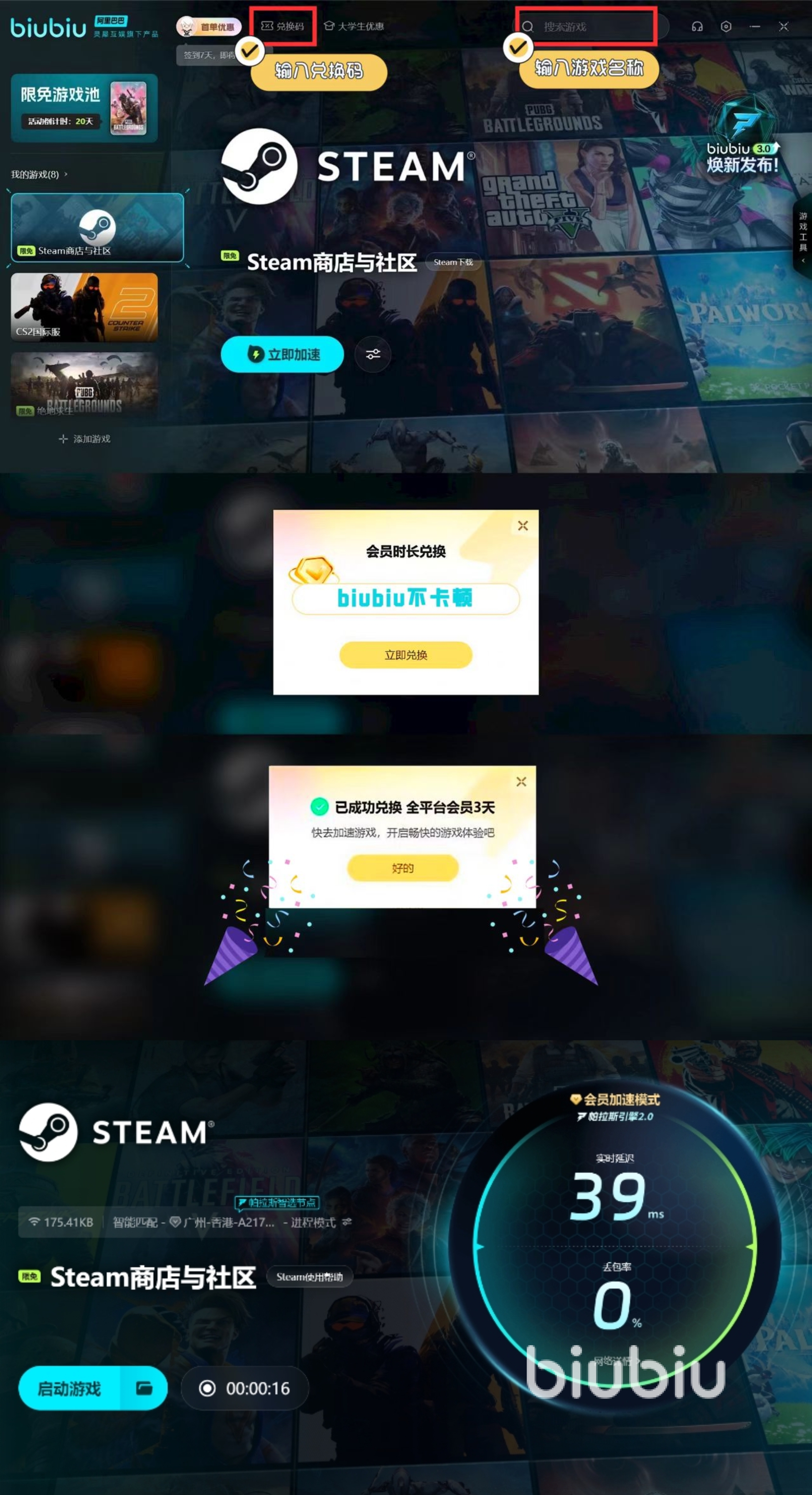 還有一種下載速度問題就是steam本身的網(wǎng)絡(luò)就不太穩(wěn)定,比如說直接開在登錄界面,這樣下載都會(huì)成為很大的問題,要是依靠steam自身的網(wǎng)路修復(fù)那有些慢,所以就可以依靠biubiu加速steam平臺(tái),這樣就能保持正常的登錄,而下載ScheduleI慢的問題也能得到解決,并且新人在注冊(cè)后便獲3小時(shí)免費(fèi)加速,新老用戶均可使用兌換碼【biubiu不卡頓】可獲3天免費(fèi)的使用權(quán)哦!