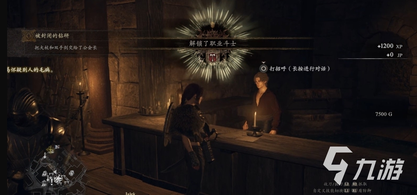 返回王城,將雙手劍和大杖交給職業(yè)行會,以此解鎖兩個新的職業(yè)選項:斗士和巫師。