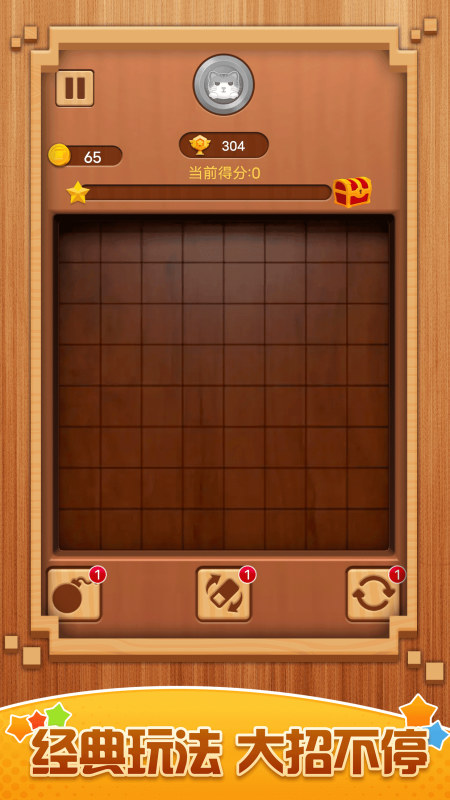《俄羅斯方塊大招版》創(chuàng)意無限的通過增設(shè)了技能的系統(tǒng),讓俄羅斯方塊在玩法性上有了質(zhì)變,游戲甚至還非尋常將掃雷元素進(jìn)行了加入,運(yùn)用了一種更為賞心悅目的木質(zhì)紋理對(duì)方塊進(jìn)行了設(shè)計(jì),每一次的開局不再只是一片空白,而是存在著諸多位置刁鉆的方塊障礙,玩家可以配置4種消除技能上陣,在這種脫離常規(guī)的方塊設(shè)計(jì)下,感受具有新時(shí)代特色的全新方塊玩法。