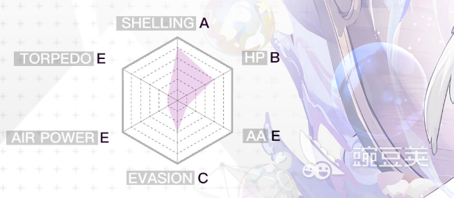 從屬性配置來看,其六維數(shù)據(jù)表現(xiàn)為炮擊A、耐久B、機(jī)動(dòng)C,其余三項(xiàng)均為E級。作為超稀有的主力風(fēng)帆艦,屬于典型的后排輸出單位,俗稱“金大炮”。但與傳統(tǒng)戰(zhàn)列艦或戰(zhàn)巡不同,風(fēng)帆艦普遍具備較低的生存能力,缺乏防空武器與防空數(shù)值,在面對空襲時(shí)極為脆弱,因此需要良好的陣容保護(hù)。其輸出核心依賴技能機(jī)制與主炮強(qiáng)化效果來實(shí)現(xiàn)爆發(fā)。