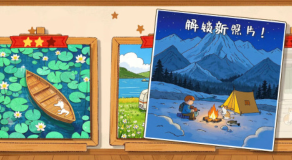 貓咪時光拼圖的畫面像一本溫馨的手繪繪本,拼圖圖案全是貓咪的日常,有的圖里貓咪趴在窗臺曬太陽,爪子搭在玻璃上,有的圖里貓咪追著毛線球跑,毛線纏了一身,玩的時候把打亂的碎片拼成完整畫面,剛開始碎片少很容易找到邊緣帶直線的碎片拼出邊框,再慢慢往中間拼,每拼完一幅圖,都會彈出一段小文字講這只貓咪的故事。