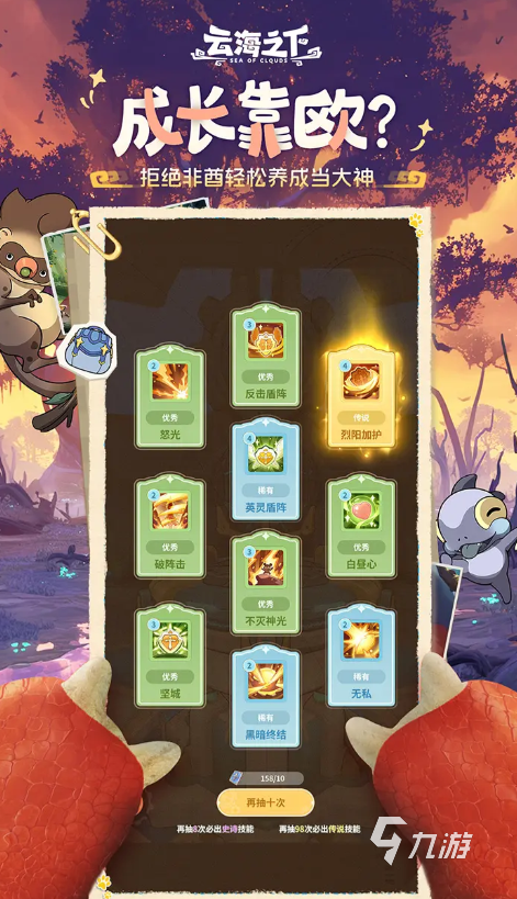 其次,云海之下游戲?yàn)橥婕姨峁┝藰O為豐富的游戲內(nèi)容。玩家可以從八大特色職業(yè)中自由選擇并定制自己的角色,這些職業(yè)包括戰(zhàn)士、騎士、魔法師、刺客等,每種職業(yè)都擁有獨(dú)特的技能樹(shù)和戰(zhàn)斗風(fēng)格。此外,游戲中還有數(shù)十種幻獸可供玩家合成、升星,并參與離線打工收益。在戰(zhàn)斗中,幻獸將與職業(yè)技能形成連攜策略,為玩家?guī)?lái)更加豐富的戰(zhàn)斗體驗(yàn)。同時(shí),玩家還可以參與跨服爭(zhēng)霸,爭(zhēng)奪榮耀榜單上的排名,記錄自己在幻獸收集、秘境探索、競(jìng)技場(chǎng)等領(lǐng)域的成就。