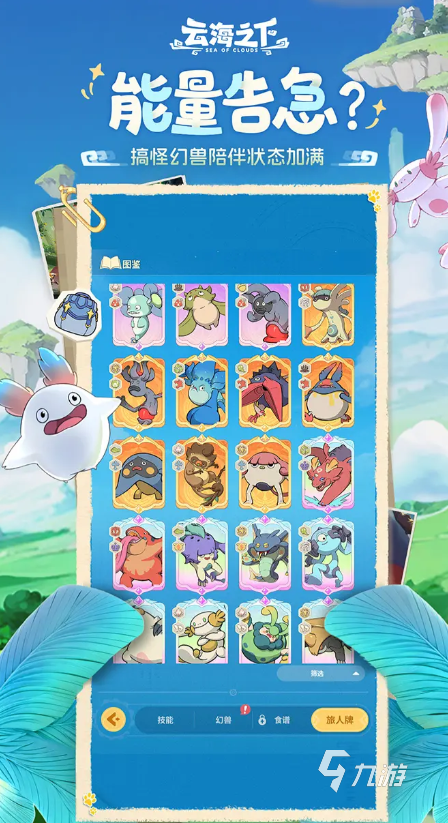 再次,云海之下游戲?yàn)橥婕掖蛟炝艘环N極為治愈系的游戲體驗(yàn)。游戲以云海浮島與深海文明為背景,融合了“輕策略、慢冒險(xiǎn)、沉浸敘事”等要素,為玩家?guī)?lái)了一段寧?kù)o而溫柔的幻想旅程。游戲中的角色設(shè)計(jì)生動(dòng)有趣,通過(guò)劇情與日?;?dòng)展現(xiàn)了鮮明的設(shè)定與性格,讓玩家能夠與之產(chǎn)生強(qiáng)烈的情感共鳴。此外,游戲的主界面背景是飄浮在云海上的小島群,伴隨著海鳥(niǎo)的鳴叫與悠悠琴聲,營(yíng)造出一種寧?kù)o而治愈的氛圍,讓玩家在游戲中能夠找到一片屬于自己的寧?kù)o之地。