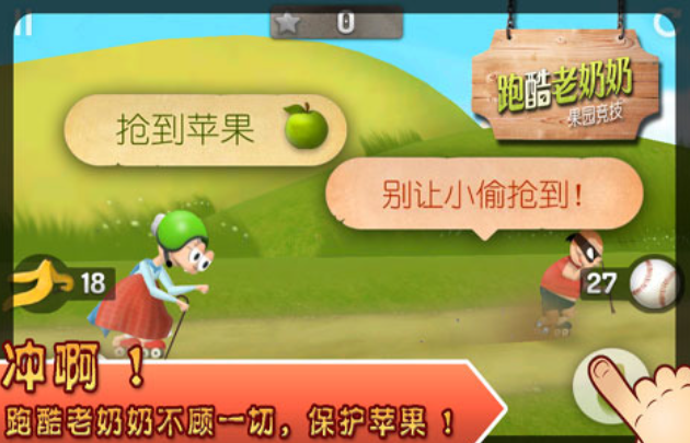 跑酷老奶奶是具備著老奶奶主角的精品跑酷類型游戲,可惡的小偷光顧了老奶奶的果園,你的任務(wù)則是化身老奶奶奪回被搶奪的資源,極為爽快的跑酷設(shè)定加上老奶奶的搞笑造型也是亮點(diǎn),踩著滑板追小偷的老奶奶形象令人印象深刻,具備著卡通呆萌的美術(shù)跟很快的節(jié)奏,充滿創(chuàng)新的跑酷玩法呈現(xiàn)出游戲的精髓。