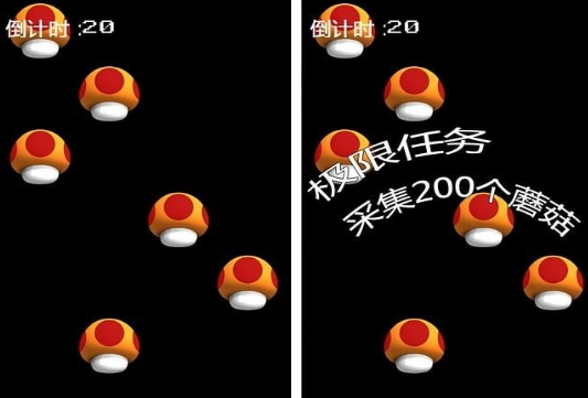 這款快節(jié)奏的游戲只需要20秒一局。屏幕上就會(huì)跳出很多顏色的蘑菇,玩家就需要盡快的去收集。后期蘑菇出現(xiàn)的速度是比較快的,同時(shí)還會(huì)有一些突然的障礙物一定要避開(kāi)。蘑菇在跳出來(lái)時(shí)位置根本就沒(méi)有規(guī)律,每一次玩都會(huì)有一種新鮮感覺(jué)。越是往后那節(jié)奏也會(huì)更加的緊張,所以必須要手眼配合,讓大家玩游戲時(shí)很爽。