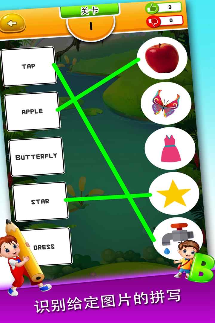 《英文連連看》隨著英文學(xué)習(xí)課程越來(lái)越早,打牢基礎(chǔ)是關(guān)鍵?!队⑽倪B連看》這款游戲,專門(mén)為兒童而創(chuàng)作,可以讓孩子在游戲中學(xué)習(xí)英語(yǔ),為學(xué)習(xí)奠定扎實(shí)的基本功。玩起來(lái)也非常簡(jiǎn)單,也能給孩子加深記憶。游戲中,只需要找出各物品所對(duì)應(yīng)的單詞,并將它們串連起來(lái)就可以。游戲的中的海量關(guān)卡,都有著不同的單詞,用來(lái)給孩子游玩或者輔導(dǎo)英語(yǔ)功課,都是非常不錯(cuò)的選擇。