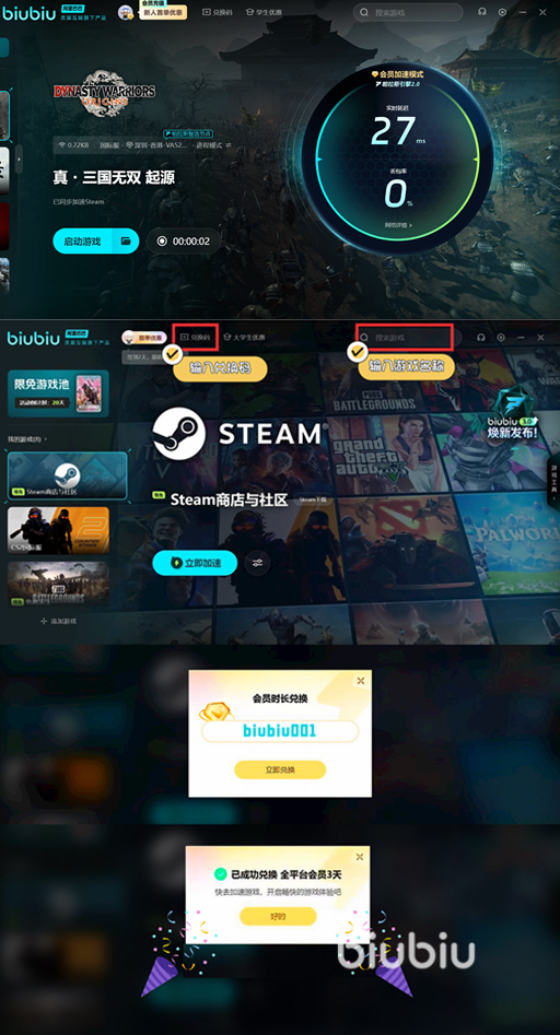 如此精彩的游戲也吸引了不少玩家的關(guān)注,只是想下載游戲,別忘記要保證網(wǎng)絡(luò)的順暢,以免游戲下載卡頓?,F(xiàn)在加速器還有一個(gè)免費(fèi)加速時(shí)長(zhǎng)可以領(lǐng)取,新用戶(hù)在注冊(cè)之后可以免費(fèi)3個(gè)小時(shí)。要想獲取更久的時(shí)間,還可以在頁(yè)面直接復(fù)制口令【biubiu001】免費(fèi)72小時(shí),一共是免費(fèi)75小時(shí)。