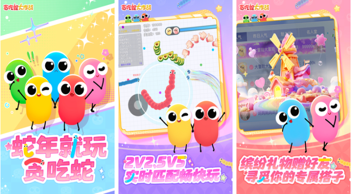 貪吃蛇大作戰(zhàn)是吞噬類電競(jìng)游戲中超出名的作品,無論是5V5還是單挑模式都呈現(xiàn)出極強(qiáng)刺激性,還可給隊(duì)友送好禮讓其解鎖更多的皮膚,小貪吃蛇的造型看上去格外呆萌為本作潤色不少,用一根手指就可隨意切換貪吃蛇方向讓其吞噬,眾多志同道合的玩家都會(huì)等你組隊(duì)冒險(xiǎn),超前的吞噬電競(jìng)機(jī)制帶來特殊的滿足感。