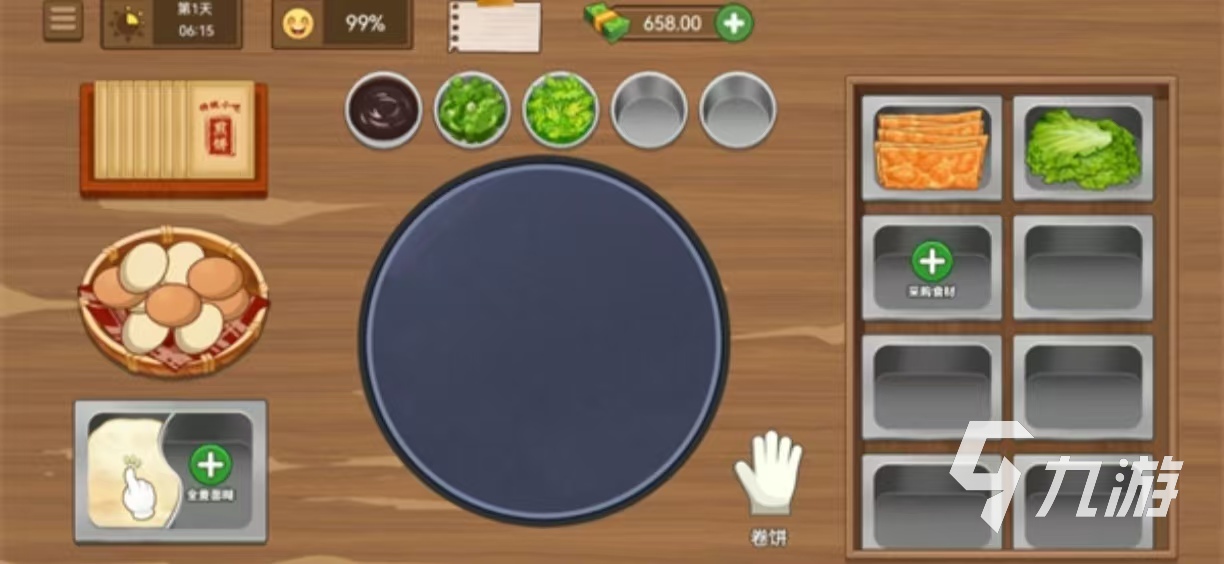 《一起攤煎餅吧》可以制作煎餅果子,冰淇淋,壽司等很多美食,按照顧客的要求來完美的制作一個煎餅果子,打包之后送到顧客的手中。煎餅果子中的食物需要根據(jù)客人的要求來選擇,做好之后把煎餅打包給顧客,顧客滿意之后會給玩家金幣??梢杂觅嵢〉慕饚艁砩壷谱骷屣灥脑O備,也可以來為食材進行升級,有顧客購買就會支付玩家金錢,然后再來購買更多的食材,做更多的口味,來迎接更多的客人。