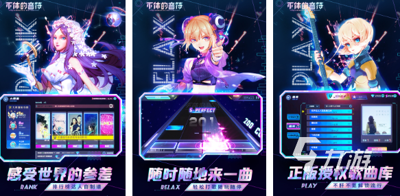 《不休的音符》是一款賽博朋克系列的音樂游戲,游戲根據(jù)不同的曲目搭建了不同的打歌難度,玩家需要在游戲中找到自己·的節(jié)奏感,完成滑動、觸碰和長按的操作,游戲的玩法難度中等偏上,操作起來很考驗玩家的反應(yīng)能力和動態(tài)視覺能力,對于一些喜歡挑戰(zhàn)高難度的玩家來說,這款游戲的體驗極佳哦~