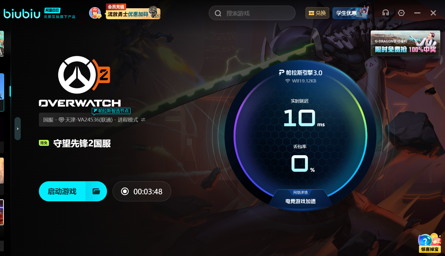 更令人高興的是,biubiu充分體現(xiàn)了簡單易用的理念,使用過程中沒有技術(shù)門檻。用戶只需在軟件中搜索守望先鋒2,然后點(diǎn)擊相應(yīng)服務(wù)器區(qū)域的加速選項(xiàng)即可。會自動為您選擇最佳線路節(jié)點(diǎn),實(shí)現(xiàn)一鍵啟動,徹底免去繁瑣的手動設(shè)置。在加速啟動后,界面還會實(shí)時直觀地顯示當(dāng)前的網(wǎng)絡(luò)延遲和丟包率,讓加速效果一目了然。